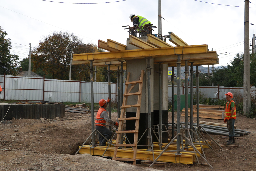 Директор подрядной организации «Энергострой» Денис Дроздецкий отчитался о работах по строительству пешеходного моста в Перевальном. На объекте выполнено устройство бурнонабивных свай, проведеноармирование железобетонных колонн и ротверков, выполнено устройство и бетонирование фундамента, а также выполнено устройство опалубки монолитных железобетонных ригелей.