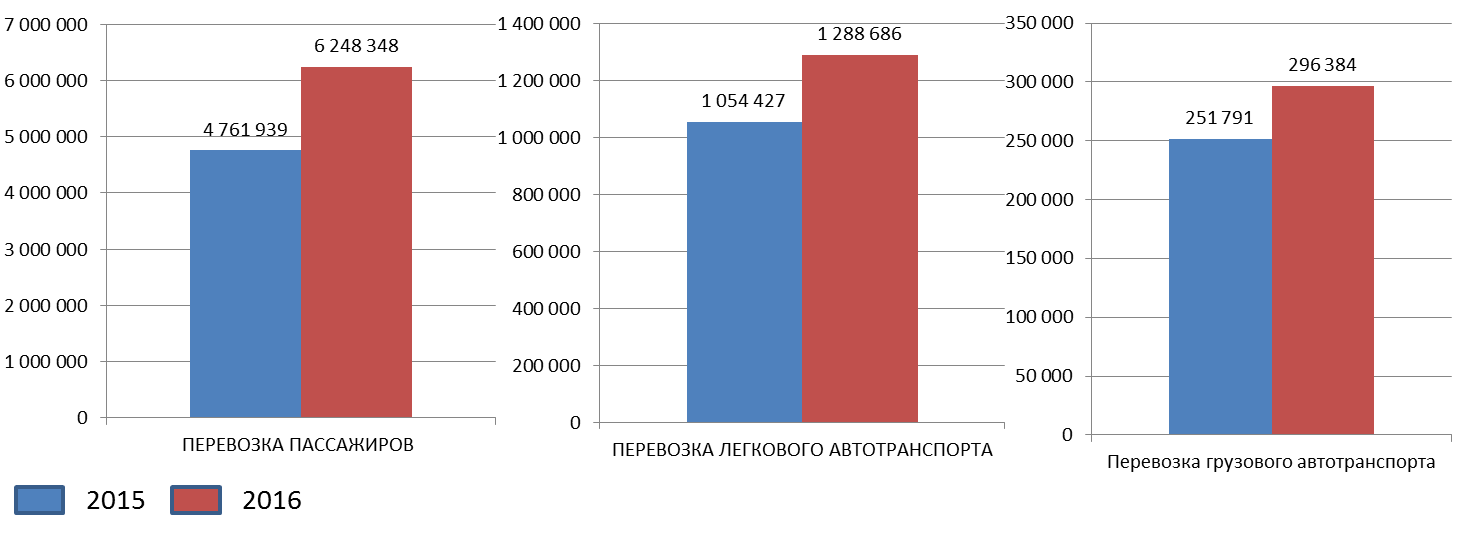 Всего за 2016 г. перевезено 1 628 203 транспортных средств.